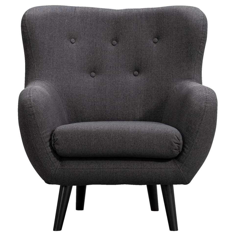 Fauteuil Viborg is een zeer luxueuze, comfortabele fauteuil in de stoere kleur grijs. Deze ruime, gestoffeerde stoel is gecapitonneerd en heeft slanke, zwarte pootjes.