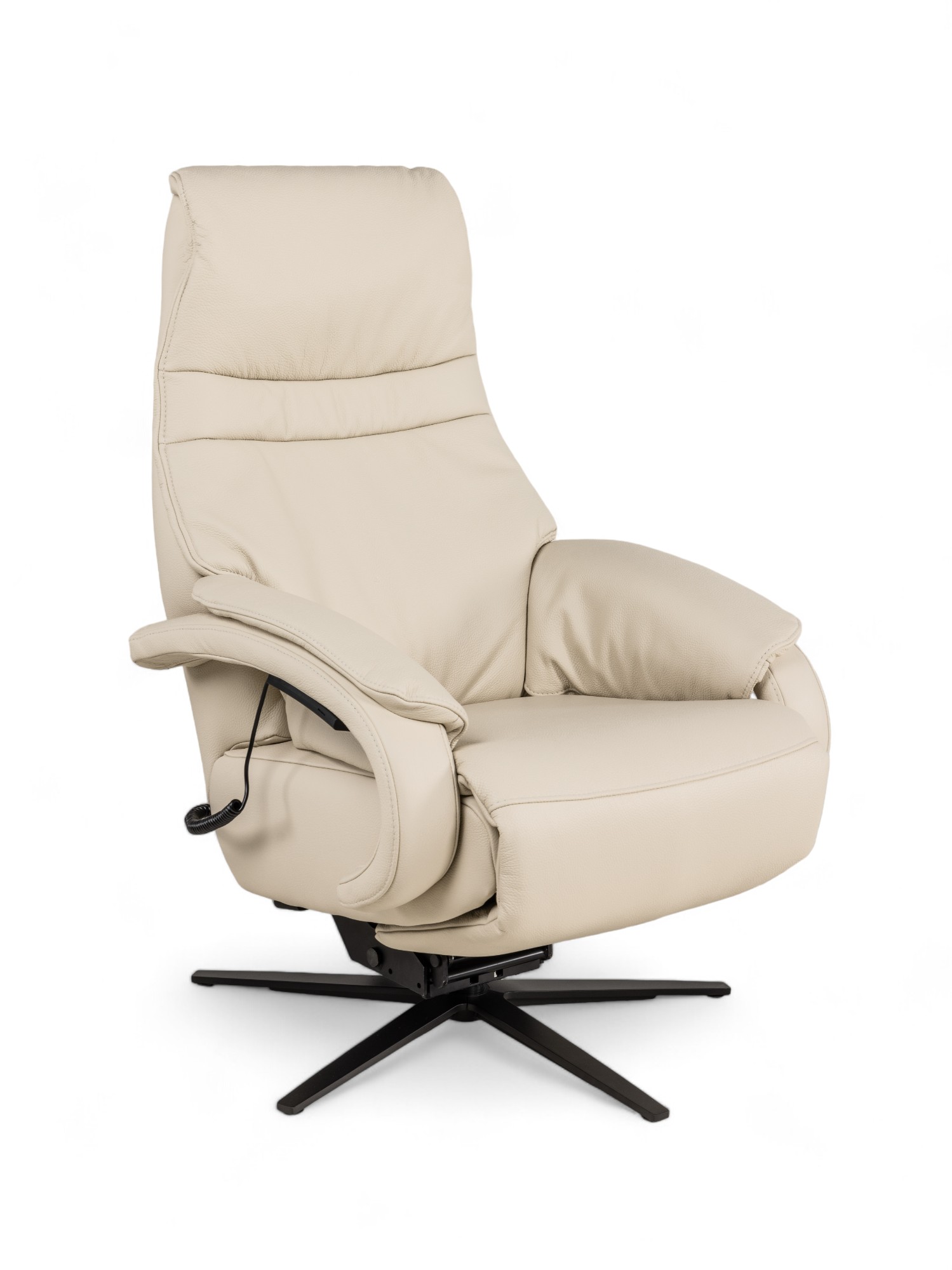 Ontdek de ultieme ontspanning met de relaxfauteuil Oviedo van Hukla, uitgevoerd in ecru leder. Verkrijgbaar in drie maten en diverse uitvoeringen, inclusief keuze van poten. De Oviedo biedt optimaal comfort met een in hoogte verstelbare spindel, hart-balanspositie voor verbeterde bloedcirculatie, en elektromotoren voor het verstellen van been- en rugsteunen, evenals een opsta-hulp. Het hoofdkussen is motorisch verstelbaar en de fauteuil beschikt over een afstandsbediening om alles gemakkelijk te bedienen. Comfortabele armleuningen maken de ervaring compleet. Deze veelzijdige fauteuil is voorzien van een accu voor zorgeloos gebruik. Bezoek onze toonzaal en ontdek alle mogelijkheden!Relaxfauteuil OviedoDeze uitvoering: 59 Belvita ecru lederVerkrijgbaar in 3 afmetingen: smal, medium en largeZithoogte: 44/47/49 cmZitdiepte: 50/52/54 cmVerkrijgbaar in verschillende kleurenVerkrijgbaar in stof en lederMeerdere keuzes in soort poot en kleur of materiaal: stervormig, lensvormig, houten draairingIn hoogte verstelbare spindelHart-balanspositieElektromotoren voor verstelling van been- en rugsteunenElektromotor voor opsta-hulMotorische hoofdkussenverstellingAccuStijl: Modern, klassiek, landelijk