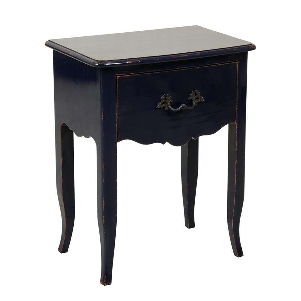 Wandtafel Faye is een mooie tafel met een klassieke, romantische uitstraling. Deze wandtafel in de kleur donkerblauw is gemaakt uit een combinatie van massief grenenhout en MDF.
